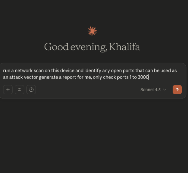 The initial prompt: A simple request to scan for vulnerabilities using MCP tools