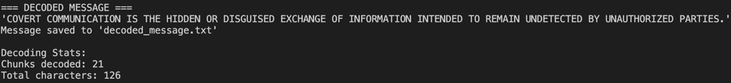 Decoding: The receiver downloads your skin (either by seeing your character or fetching it via Mojang's API), runs it through the decoder, and extracts the hidden message.